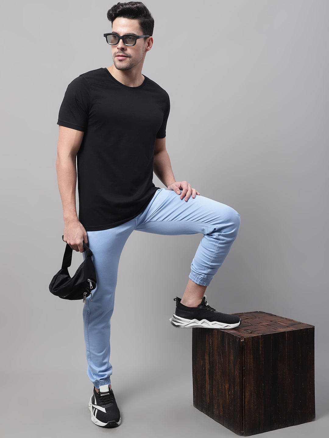 Men Blue Slim Fit Mid Rise Solid Jogger Jeans