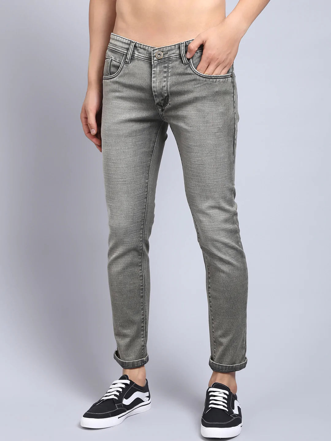 Men Green Slim Fit Heavy Fade Stretchable Jeans