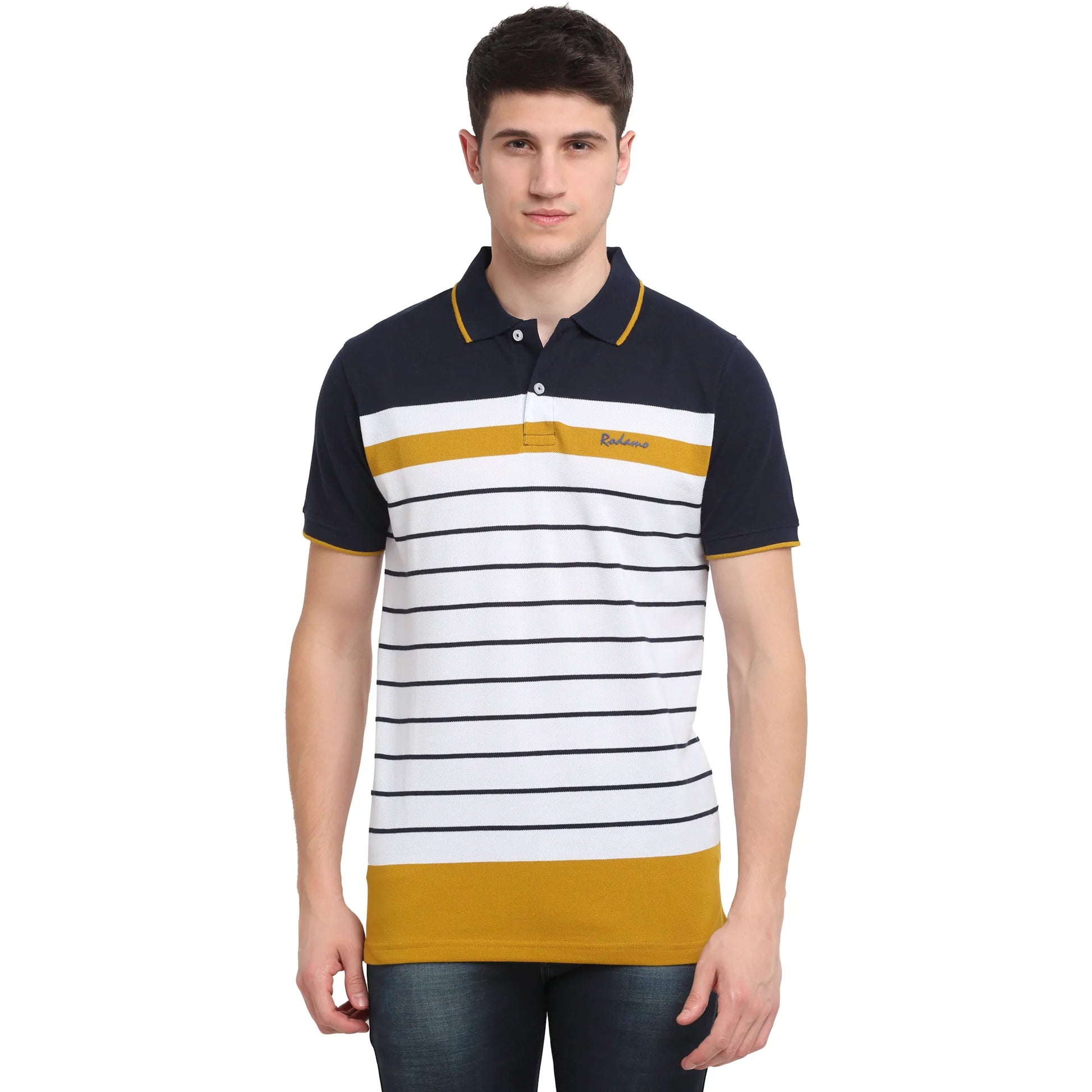 Men Horizontal Striped Polo Collar Slim Fit T-shirt